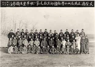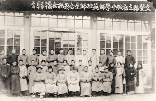 1935年在文登城南侯家集乡的花石山小学(县立第七小学)教学