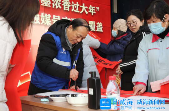 据了解,山东“翰墨浓香过大年”送春联活动已连续举办三年,成为“学习强国”学习平台开展文化惠民的品牌活动。今年,活动将继续在全省各地开展,推动“学习强国”学习平台线上、线下“同频共振”,使“学习强国”学习平台在广大群众的指尖中活起来,让学习之风吹进千家万户。(Hi威海客户端记者 宋志红 贾文娟/文 刘彬/图)