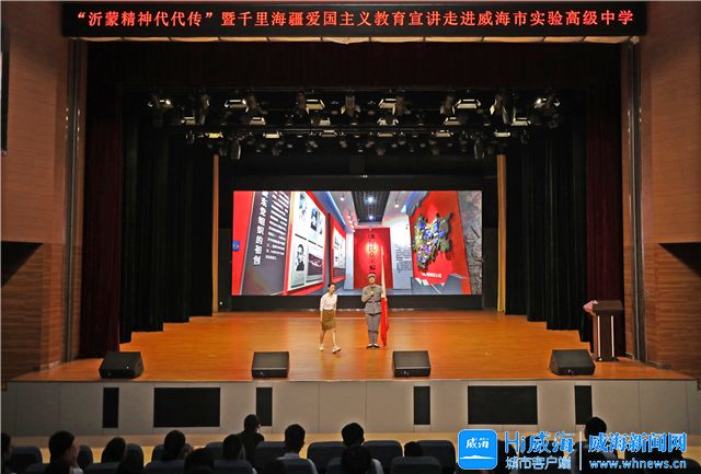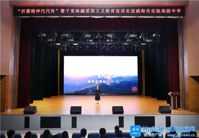 8月28日下午,威海市“沂蒙精神代代传”主题宣讲暨千里海疆爱国主义教育集中宣讲活动在威海市实验高级中学举行,标志着威海市“沂蒙精神代代传”主题宣讲活动全面启动,来自威海市实验高级中学的1000余名高一新生和教师代表参加活动。