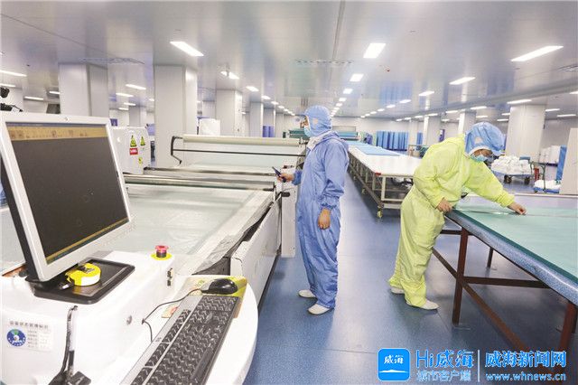 9月8日,在山东鸿宇医疗科技集团的净化车间,工人们正在生产医用SMS无纺布。