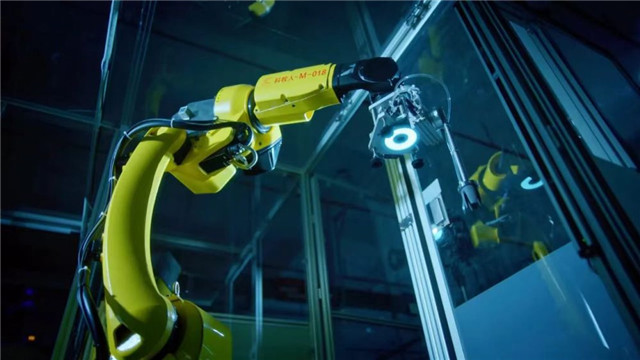 在九牧集团精密注塑车间,数台自动搬运机器人在车间与仓库间穿梭,注塑机台上的机械臂搭载红外摄像头,自动抓取物料。