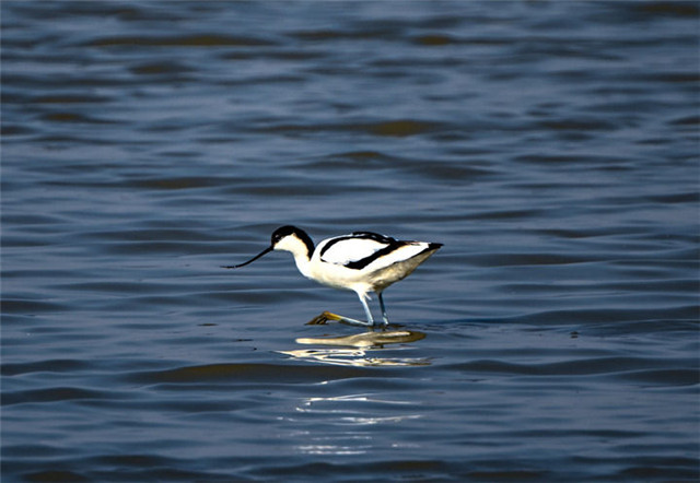 一只反嘴鹬在天津七里海湿地自然保护区内休憩觅食。新华社记者 孙凡越 摄