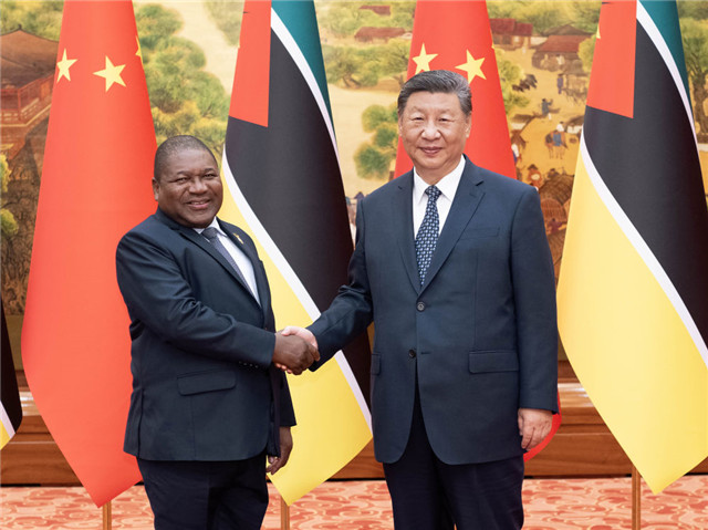 习近平指出,中国和莫桑比克始终风雨同舟、患难与共。近年来,我们多次会晤,引领两国政治互信不断深化,互利合作成果丰硕,中莫关系进入大有可为的新时期。明年将迎来中莫建交50周年,希望双方一道努力,弘扬传统友谊,深化互利合作,赋予中莫全面战略合作伙伴关系新的内涵。