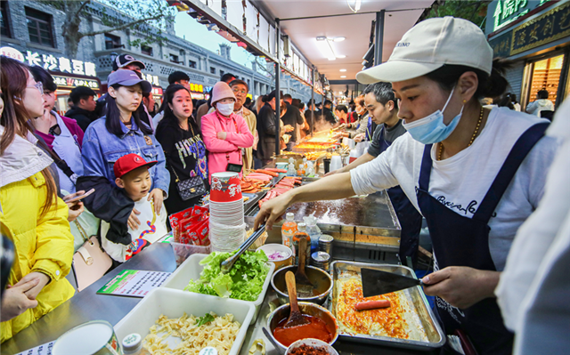 民生改善是更新的另一条主线。东城路夜市改造后,煤气罐换成电气灶,油烟设备统一安装,管网、人行道全面升级。“现在安全又卫生,客流量涨了三成!”一位摊主说。卫城大院则以围合式院落重现小街坊韵味,青砖灰瓦的建筑成为年轻人聚集地,为夜经济注入活力。