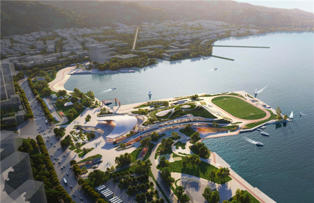 至海港湾的蜕变始于2018年。项目创新采用框架+钢拱结构,其中81米超长跨拱为国内首次应用,既破解了海边防腐难题,也塑造了“巨鲸跃海”的独特意象。如今,东侧40米全景落地窗被誉为“巨鲸之眼”,成为观海最佳点位,日均客流量超万人次。“孩子喜欢互动展览,我爱在书吧看海,这才是精致的滨海生活!”带孙子游玩的市民王女士说。